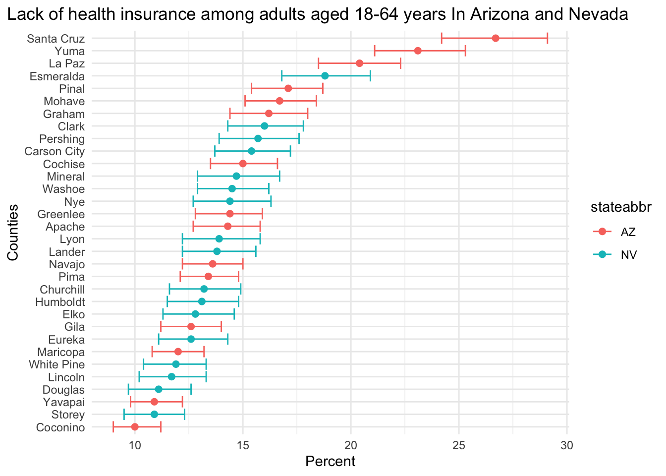 "Lack of health insurance among adults aged 18-64 years In Arizona and Nevada",