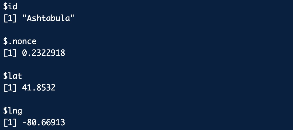 observe({ # Update table filtering based on selected countiesif (!is.null(rv$selected_counties) &&length(rv$selected_counties) >0) { # Check if any counties are selected rv$filtered_data <- ohio |>filter(locationname %in% rv$selected_counties) } else { rv$filtered_data <- ohio } })